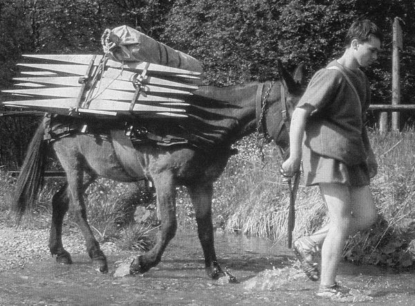 Das stramentum (Tragsattel) sorgte für eine ausgewogene Lastenverteilung. Geführt wurde das Maultier von einem als mulio (Maultiertreiber) bezeichneten Sklaven. Auf Ebene der Zenturien kamen ausschliesslich Lasttiere zum Einsatz (die Offiziere hatten mehrere). Konnten Wagen verwendet werden, liess sich das Gepäcksgewicht deutlich erhöhen. Doch gab es erstens im Feindesland keine Strassen und Wagen waren leicht zu blockieren, sodass sie wohl nur bei Truppenverlegungen innerhalb des Reiches in grösserem Ausmass benutzt wurden. Zusätzliche Ausrüstungsgegenstände etc. wurden noch von einem eigenen - stets klein gehaltenen - Legionstross befördert, der durchaus auch Wagen beinhalten konnte. |