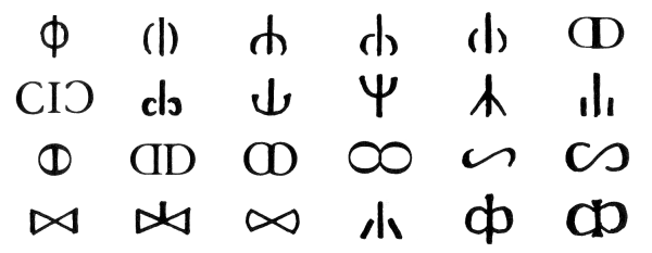 Ursprünglich schrieb man also die 100 mit einem Stern aus drei überkreuzten Strichen. Im Etruskischen wurde daraus ein leicht abgewandeltes Zeichen und die anderen italischen Stämme reduzierten es nochmals. Im folgenden links das etruskische Zeichen & rechts die beiden anderen reduzierten Symbole:
